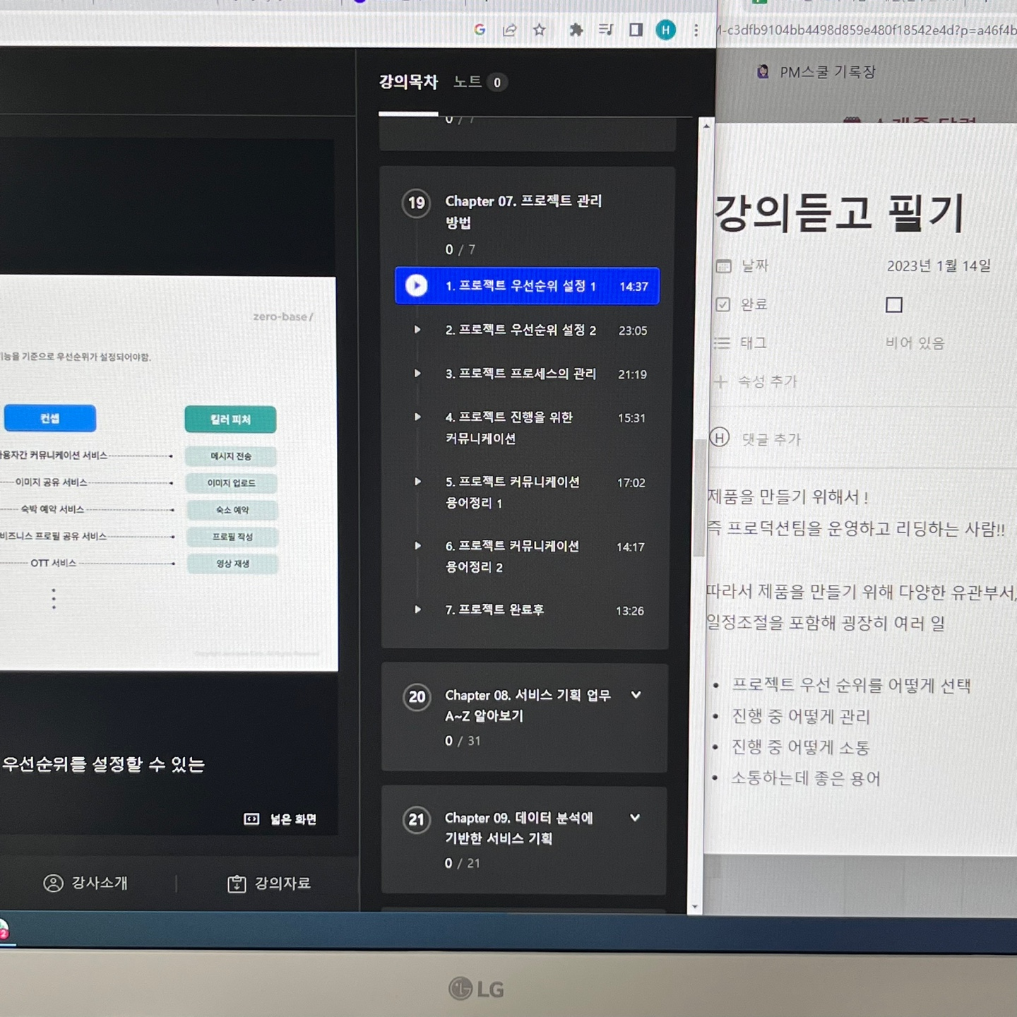 맨날 이렇게 노션에 창 두개 띄우면서 타이핑하면서 들었는데.. 오랜만에 조금 진득하게 필기하면서... 들을 수 있었음